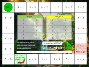 Dice-based game to support children learning to recall subtraction facts within 5.