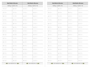 Add / Subtract 1 (within 10) Mad Maths Minutes