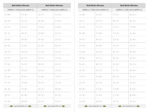 Addition / Subtraction (within 5) Mad Maths Minutes