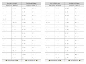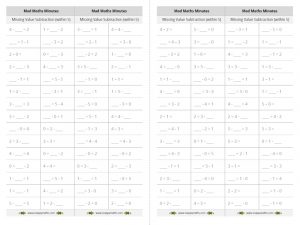 Missing Value Subtraction (within 5) Mad Maths Minutes