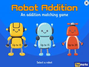 Drag and drop the robots onto the correct answers. From Topmarks.