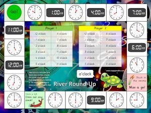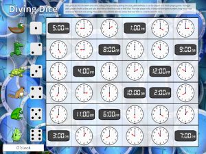 Multi-player, diced-based game to support children learning to read o’clock on analogue and digital clocks.