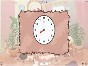 Say the time shown on the clock and then flip the card to see if you are correct. Mark your own work.