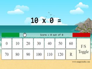 Quickfire questions covering a variety of mathematical areas. Choose ‘Times Tables’ and select ’10x’. From Topmarks.